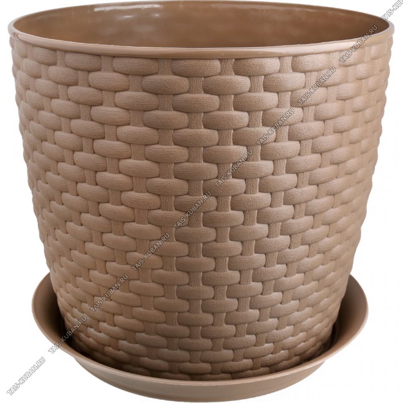Кашпо "Ротанг" бежев 3,0л d15,5 h18см,с поддон.(24)