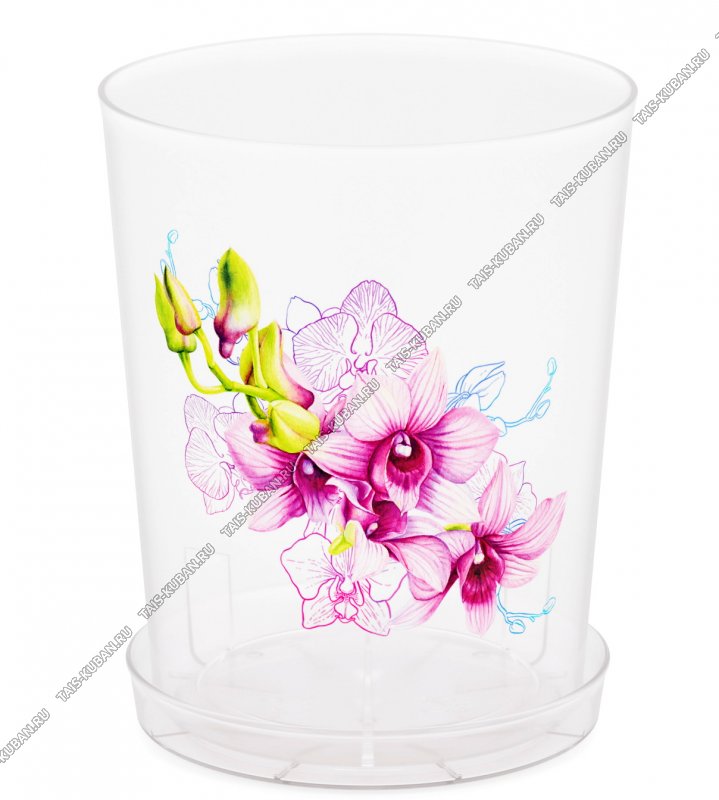 Кашпо "Орхидея розовая" прозр 3,5л d17 h21,5см,с поддон.(20)