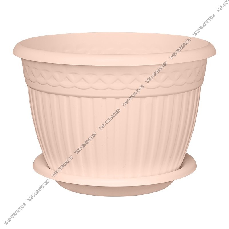 Кашпо "Византия" пудрово-розовый 3,0л d20,5 h14,5см,рельеф.узор,с поддон.(28)