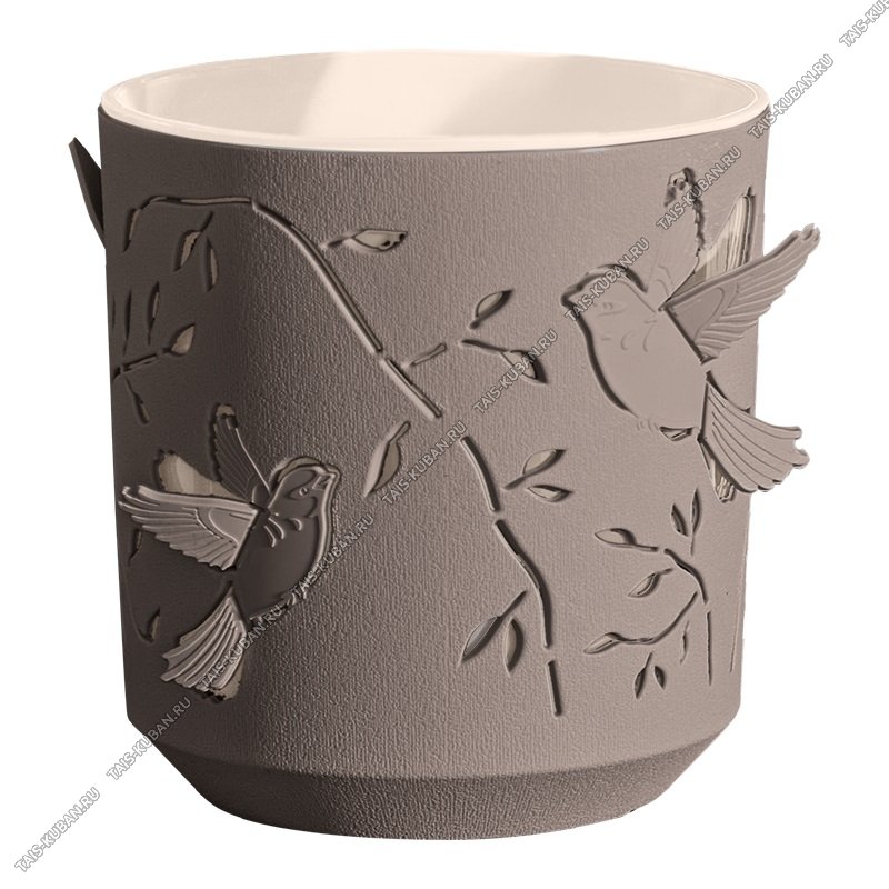 Кашпо "Колибри" мокачино/пудра 2,5л d16,5 h17,5см,3D птички,вкладыш (24)