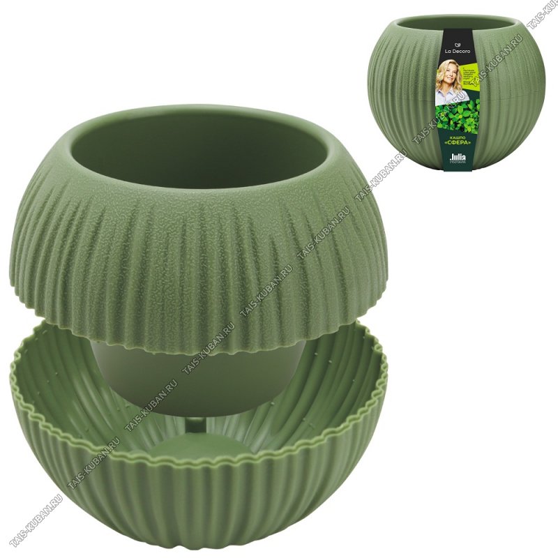 Кашпо "Сфера" оливка 1,7л d13,5 h21cм,"корпус-матрёшка",ребрист.поверх (8)