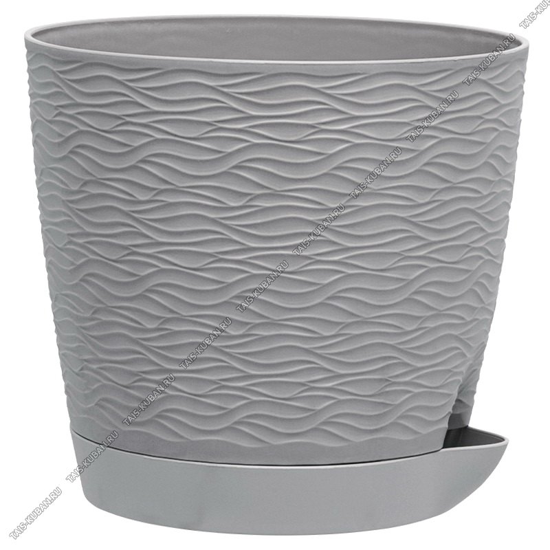 Кашпо "Блюз" 1,5л серый жемчуг d14 h13,5cм,поддон с автополив (18)