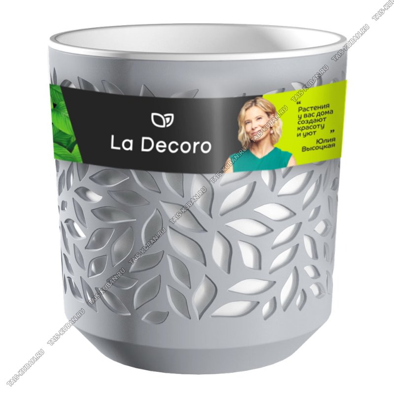 Кашпо Кашпо "Листья" серый 2,5л вклад.белый d16 h17cм (12)