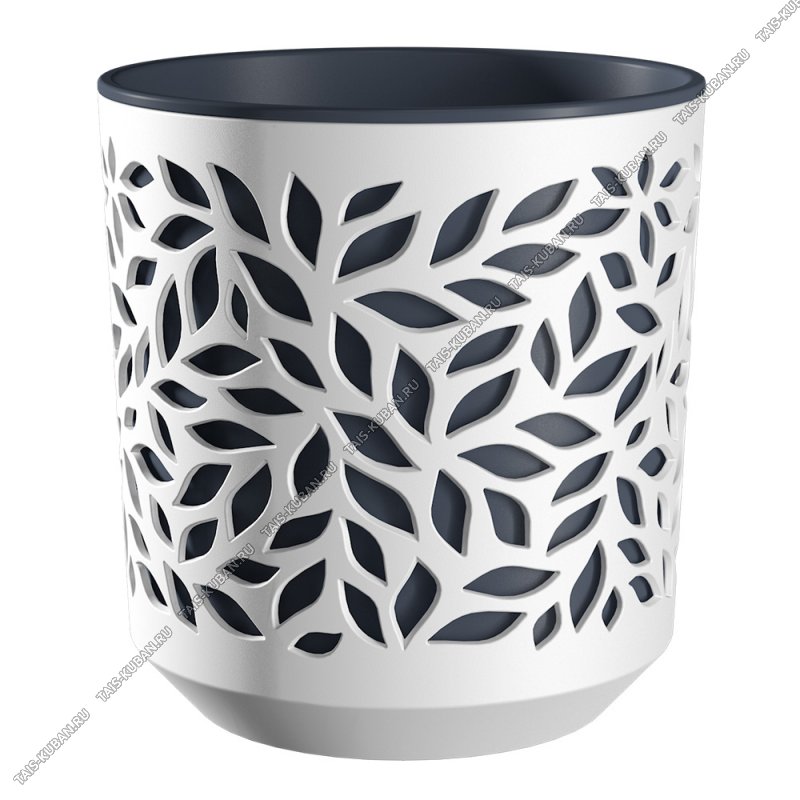 Кашпо Кашпо "Листья" белый/антрацит 2,5л +вкладыш d16 h17cм (12)