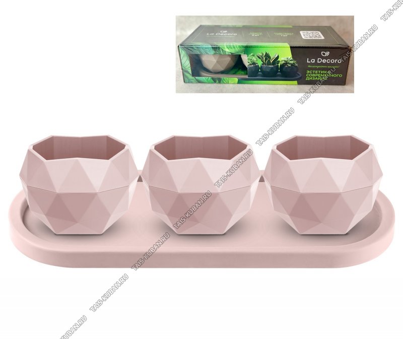 Кашпо "Топаз." н-р 3шт на подставке, беж.розовый 0,45л (4)