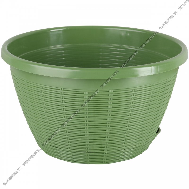 Кашпо "Плетение" олива 6.5л d30 h17cм,поддон с автополив (16)