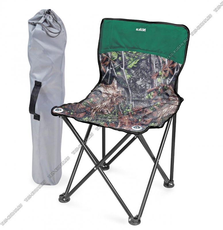 Стул складной, походный (42х42 h56см) цв.Дубовые листья/Зеленый, пвх с водооталкивающей пропиткой, чёрный металлический каркас d16см с замкнутножкой, до 100кг, сумка-чехол "Премиум1" (5)