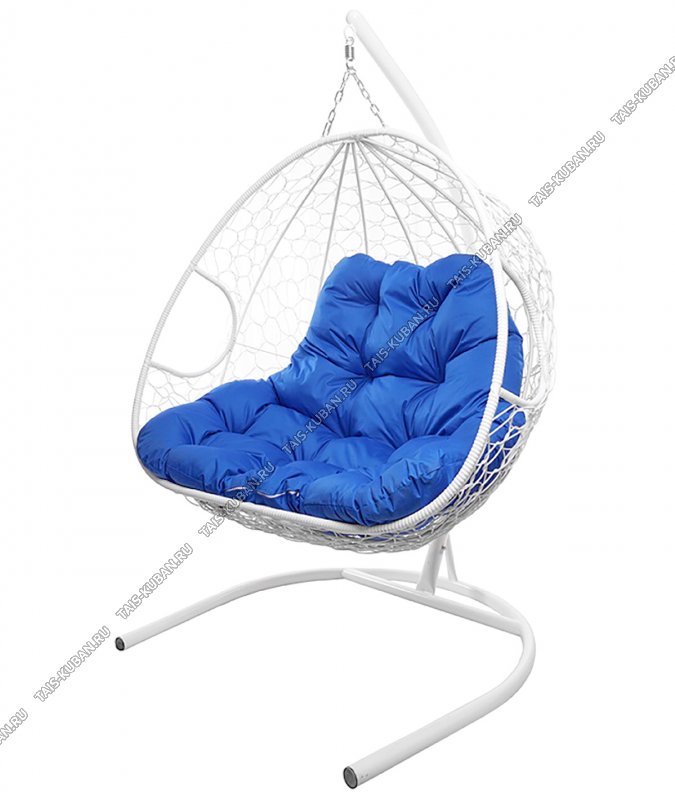 Кресло "Для двоих" до 160кг, белый, подушка синяя (1)