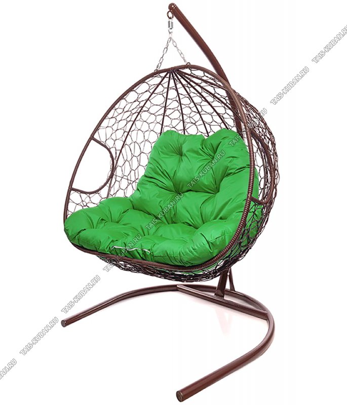 Кресло "Для двоих" до 160кг, коричневый, подушка зеленая (1)