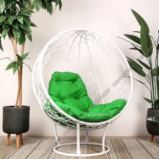 Кресло на подставке "Круг" белый, подушка зеленая, до 120кг (1)
