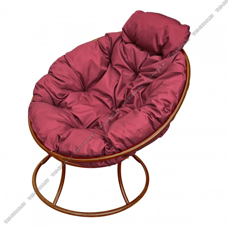 Кресло на подставке с пружинкой "Папасан мини" коричневый, подушка бордо, 120кг (1)