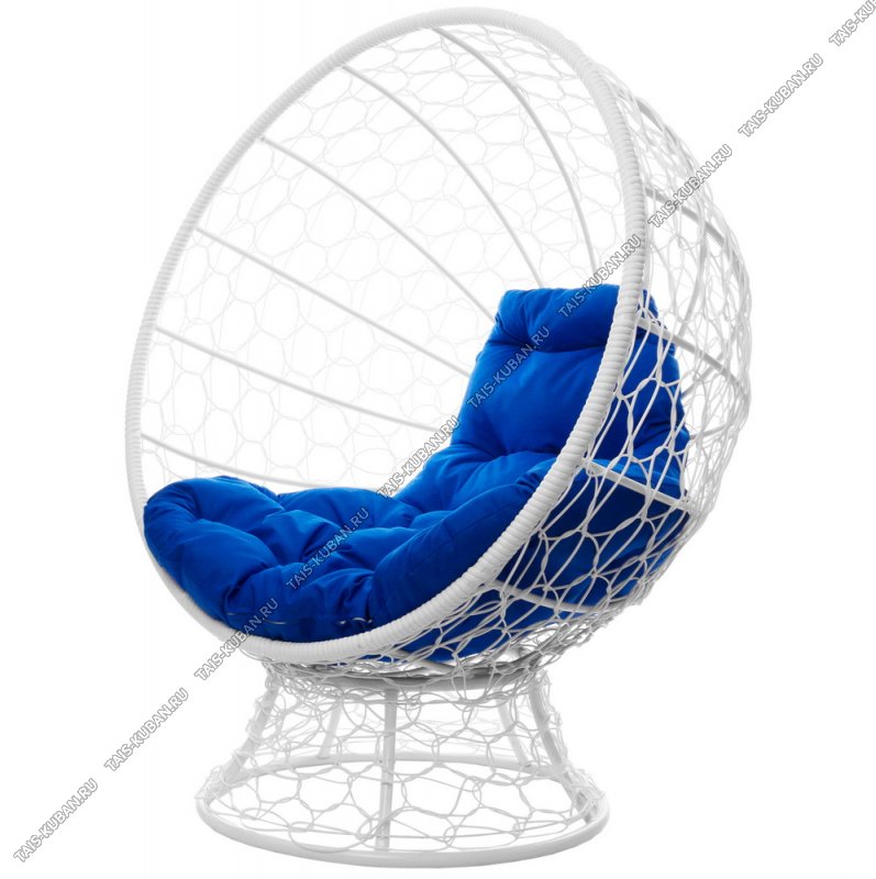 Кресло на подставке "Кокос" белый, подушка синяя, до 120кг (1)