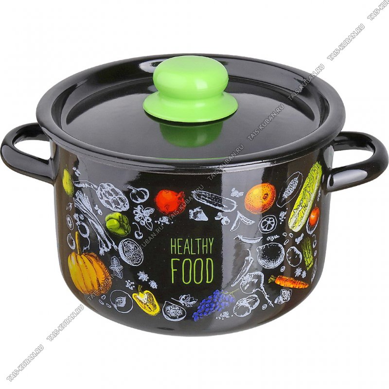 Овощи Кастрюля черный (цил) 2,9л мет.крышк,зел.пласт.ручка/кноп