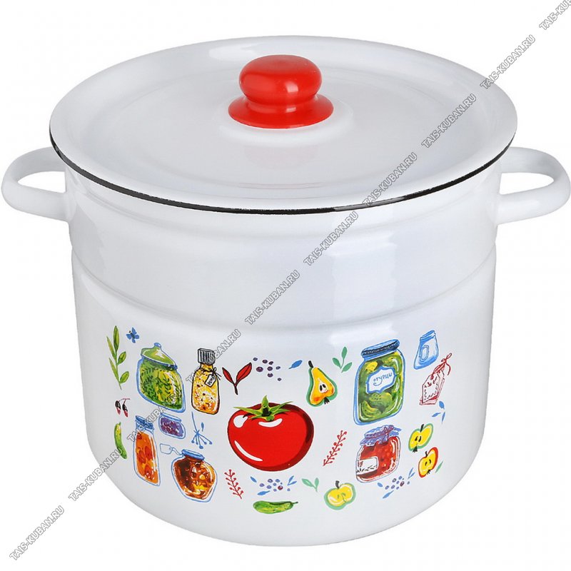 Маринад Кастрюля белый (цил) 9,0л мет.крышк,красн.пласт.ручка/кноп