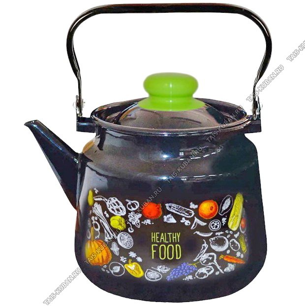 Овощи Чайник черный 3,5л метал.крыш,подвиж.черн.ручка,зел.пласт.ручка/кноп
