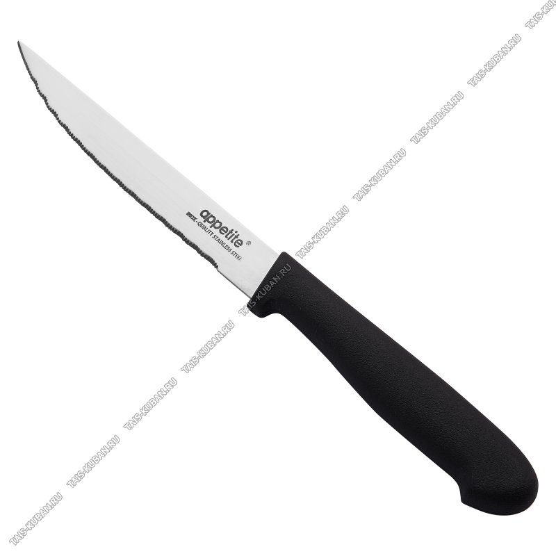 лезвие нержавеющая сталь с зубчиками,толщина 2,0мм,черная бакелитовая ручка,блистер,Appetite