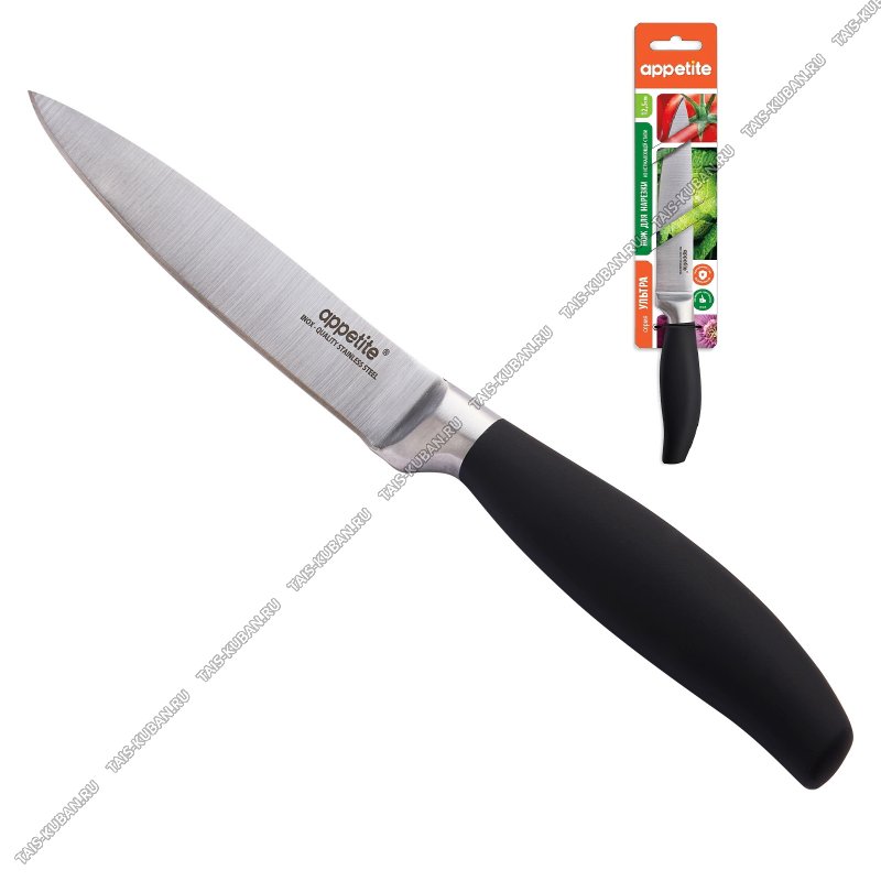 лезвие нержавеющая сталь,толщина 2,0мм,черная прорезиненная ручка,блистер,Appetite