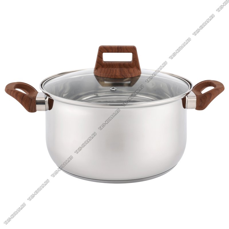 Donna Кастрюля 1,2л d16см,ф.цилиндр,индукц.капсул.дно,ручки-петля "дерево" бакелит,стеклян.крыш.ручка-петля "дерево" бакелит,покрыт.ручек soft-touch,толщ.стен/дна 0,4/1,3мм,зерк.полир (8) сталь 201