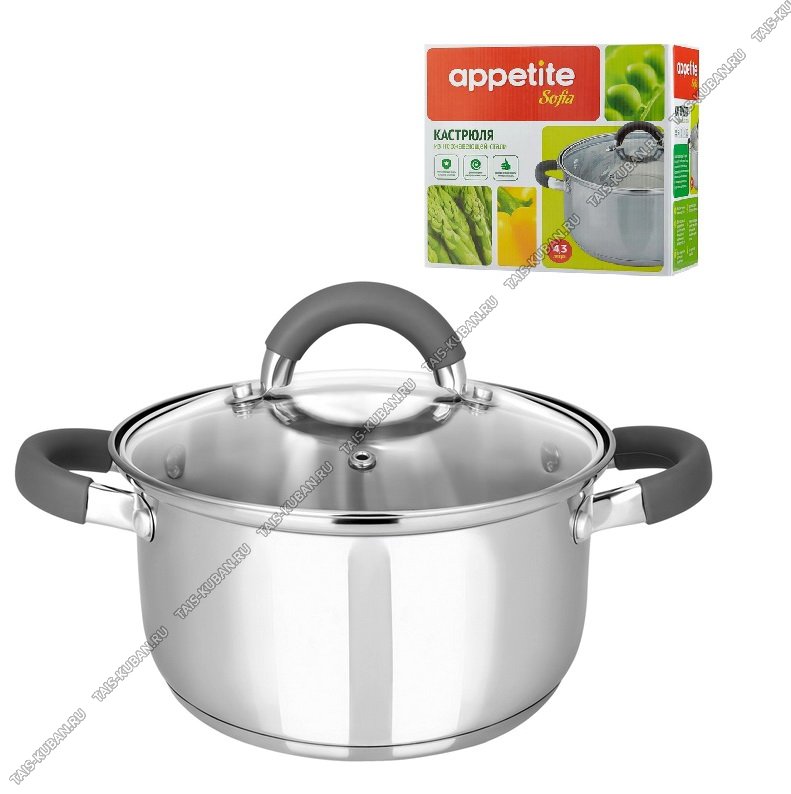 Sofia Кастрюля 4,3л d22см,ф.цилиндр,индукц.капсул.дно,ручки-дуга металл/силикон серый,стекл.крыш ручка-дуга металл/силикон серый,толщ.стен/дна 0,4/2,5мм,зерк.полир,п/у (6) сталь 201