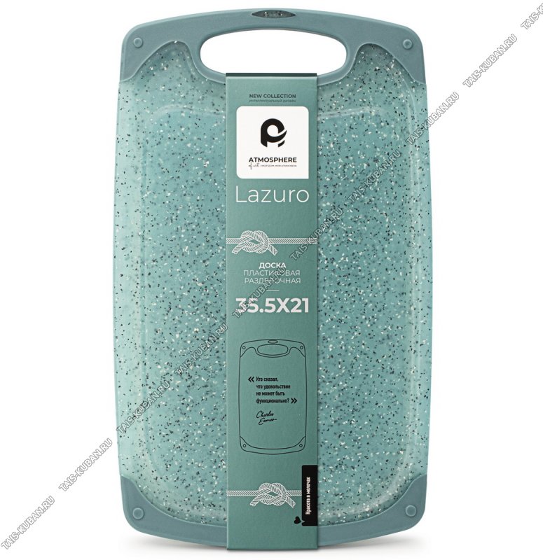 Lazuro Доска разделочная прямоугольная (пластик+силикон) 31,5х20см,ручка,лазурный (12) Lazuro Доска разделочная прямоугольная (пластик+силикон) 31,5х20см,ручка,лазурный (12)