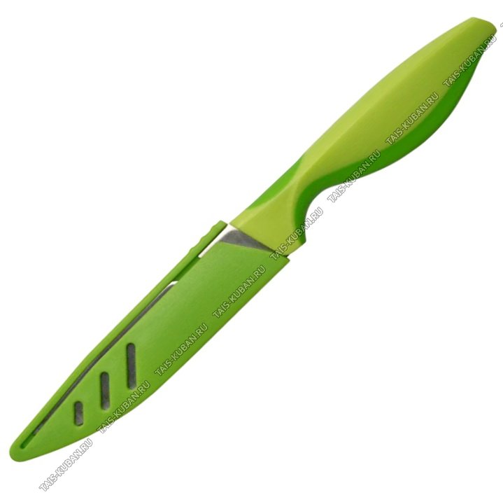 Нож универсальный с чехлом L11см с открывалкой д/бутылок,нержавеющая сталь+пластиковая ручка,зеленый,блистер (12)