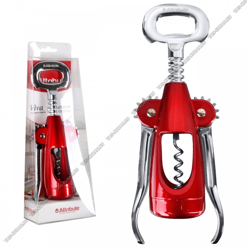 Штопор L23см +открывал.д/бутылок,хромир сталь+пластик,красн