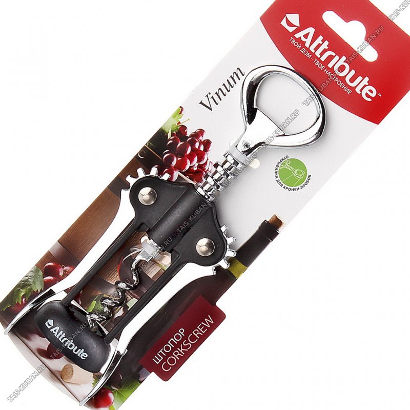 Штопор L23см +открывал.д/бутылок,хромир сталь+пластик,красн Штопор L23см +открывал.д/бутылок,хромир сталь+пластик,красн