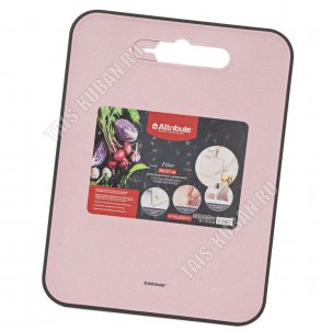 "Fiber" пудр.роз Доска раздел (пластик) с ножеточк,прям.(37х28 толщ.0,9см) прорезин.край,вырубн ручк (12)