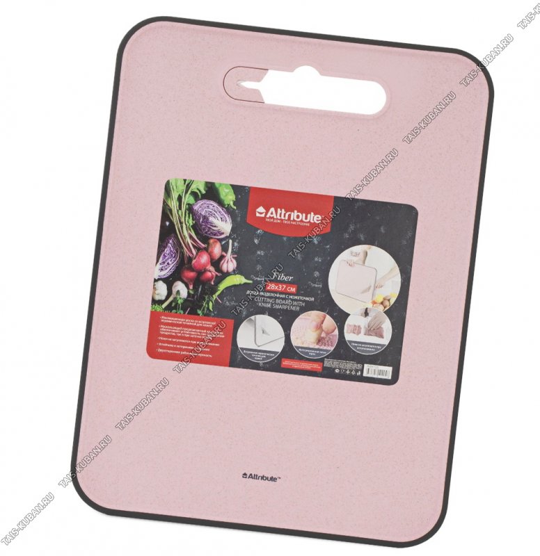 "Fiber" пудр.роз Доска раздел (пластик) с ножеточкой (37х28 толщ.0,9см) (12)
