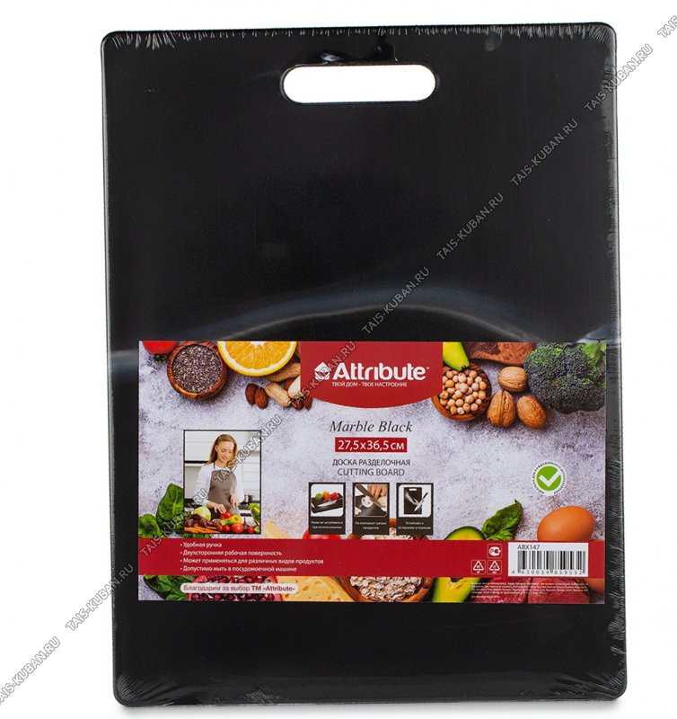 "Marble White" Доска раздел (пластик) вырубная ручка,прямоугол.(36х25 толщ.0,6см) черный (6)