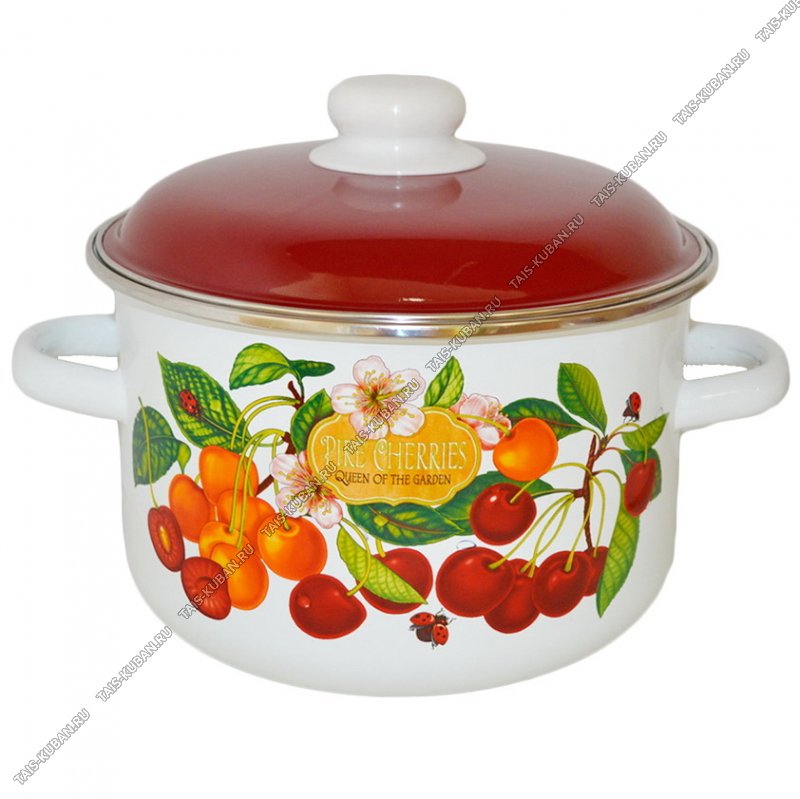 Черешня Кастрюля (цил) 4,0л,красн.мет.крыш,пласт.руч/кноп,белый (4)
