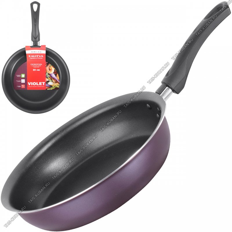 Violet Сковорода d22 h5,5см ,фиолетовый/черный,борт конус,бакелитовая ручка,толщина стенки и дна 1,8мм (4)