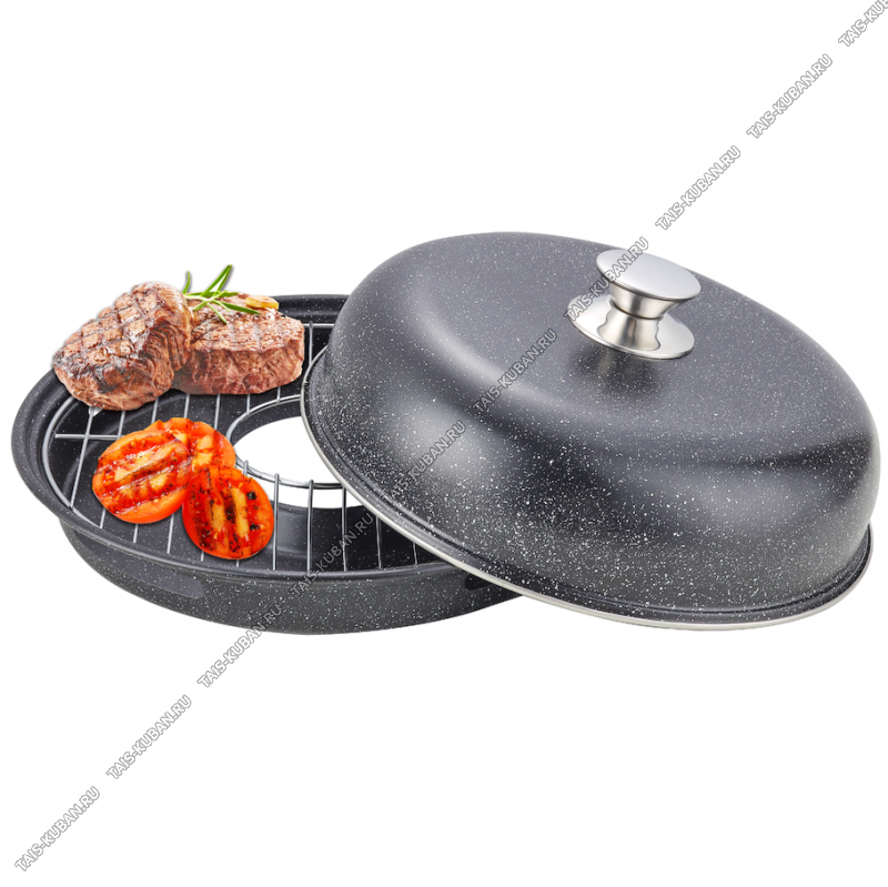 цвет черный "мрамор" с крышкой,ручка-кнопка нержавеющая сталь,решетка,съёмная ручка,толщина стенки 4,5мм,углеродистая сталь,подарочная упаковка,Kelli