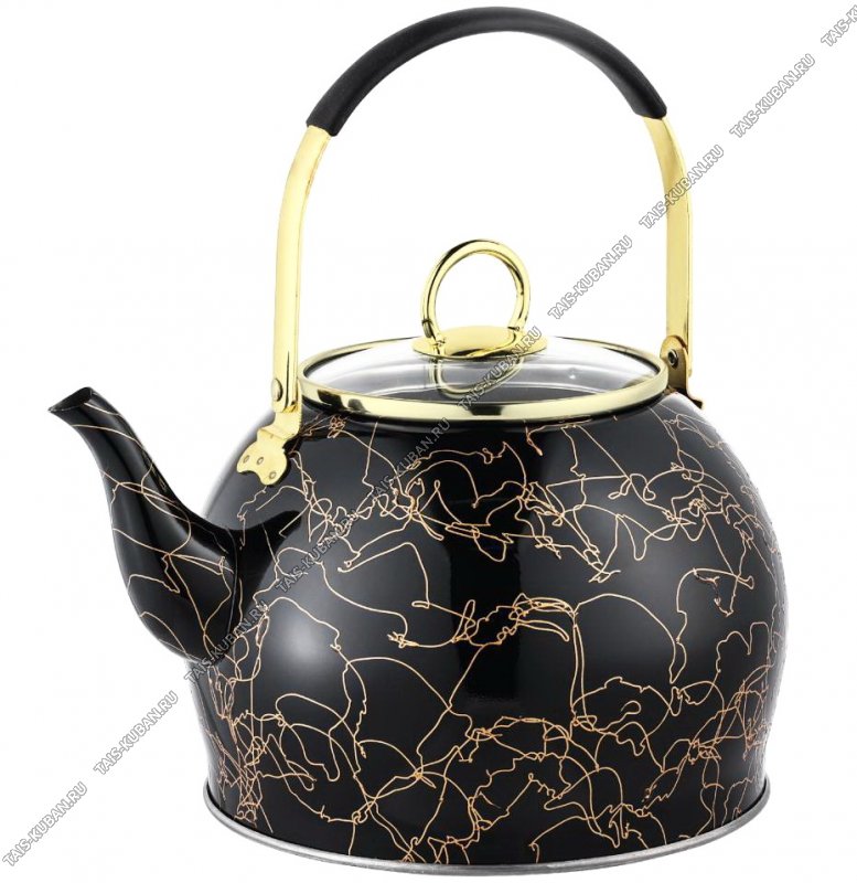 Чайник нерж 2,5л "нити золото" черн,капсул.дно,подвижн.ручка металл золото/силикон черн,крышка стекло,матов,п/у (12)