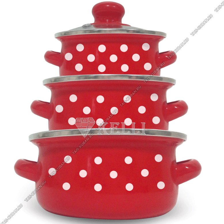 Набор мини-кастрюль 3шт "Горошки" красн-бел. (0,5/0,7/1,1л;d12/14/16см) инд.дно,стекл.крыш,п/у (12)