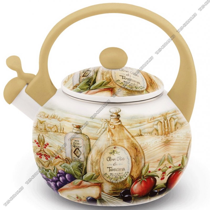 Чайник 2,5л "Оливки" кремовая эмаль,свисток,индукционное дно,пластиковая ручка,подарочная упаковка (12)