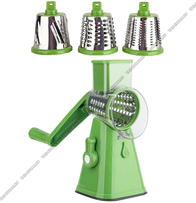 Овощерезка ручная Мульти-слайсер 3в1 д/овощей и фруктов,3 сменные насадки,нержавеющая сталь+пластик,зеленый,подарочная упаковка (12)