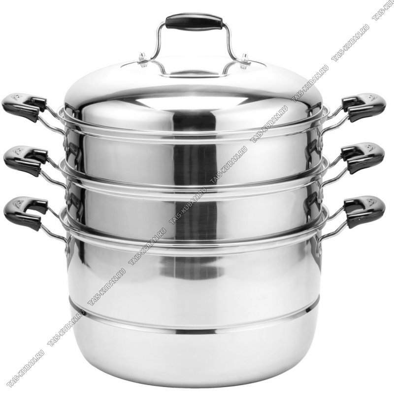 Мантоварка 3-х ярус.13,0л нерж.сталь,мет.крыш. со стекл.окош,инд.дно,бакел.эргоном.ручк,зеркал.полир,п/у (4)