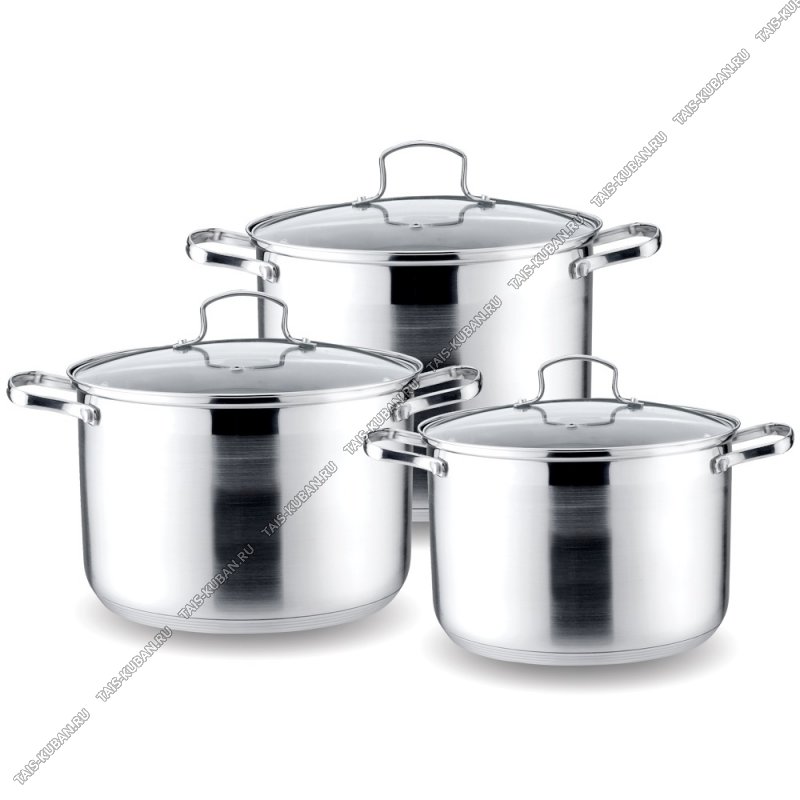 Набор кастрюль (баки) 3шт (цилиндр 5,0/6,6/8,0л d22/24/26см),стеклянные крышки,индукционное дно,металлические ручки,комбинированная полировка,подарочная упаковка(4)