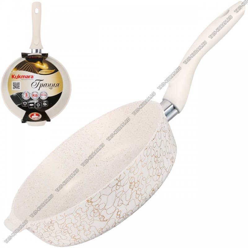 Белый с "золотой нитью" Сковорода d24 h6,5см,прямой борт,бакелитовая ручка (4)