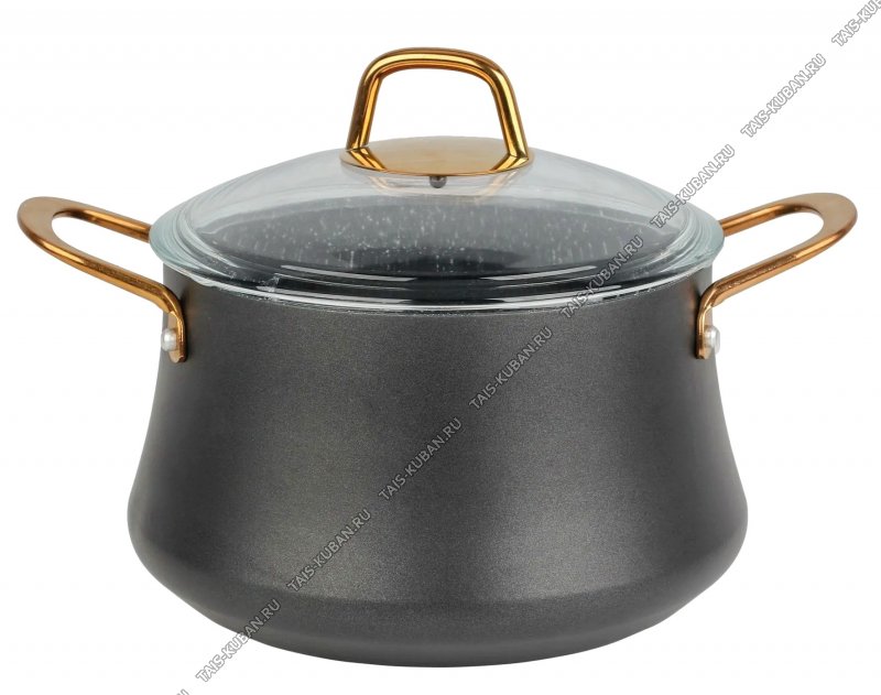 ECLIPSE Кастрюля 4,3л d20см,черная матовая/черная с белой "крошкой", индукционное дно, ручки-петли нерж."золото", стеклянная крышка ручка-скоба"золото", 4-х сл, толщ.ст.3 дна 3,5мм,форма Алладин,п/у (6)