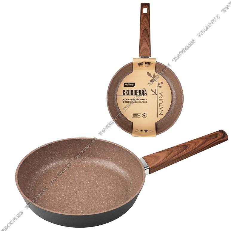 коричневый/бежевый с белым крапом,прямой борт h5,5см,индукциооное дно,толщина стенки/дна 2,8/3,7мм,бакелитовая ручка с силиконовым напылением "дерево",Mallony