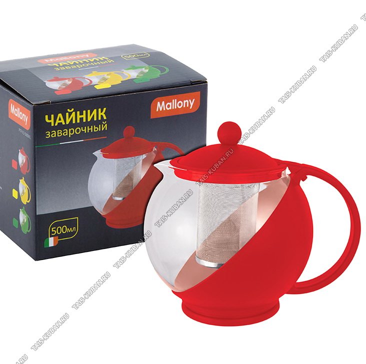Чайник завар (стекло+пластик) "Variato" 0,5л ф.шар,цв в ассорт,п/у (24)