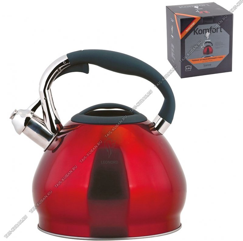 Чайник нерж "Leonord" 3,4л вишнев,свист,индукц.капсул.дно,ручка цинк.сплав/нейлон черн."soft-touch" с кнопк.д/открыван,глянец,п/у (12)