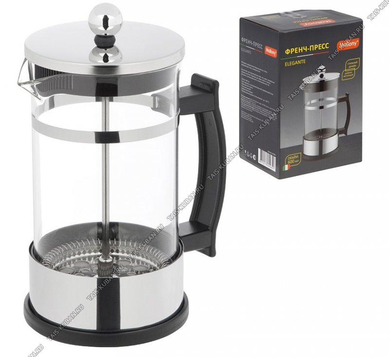 Френч-пресс (стекло+нерж) "Elegante" 0,6л ,п/у (24)