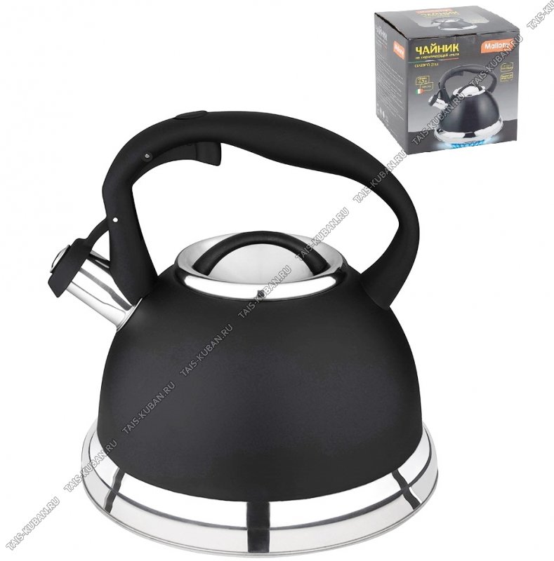 Чайник нерж 3,5л черн,свист,индукц.капсул.дно,ручка бакел.черн "soft-touch" с кнопк.д/открыван,матов/зеркал.полиров,п/у (12)