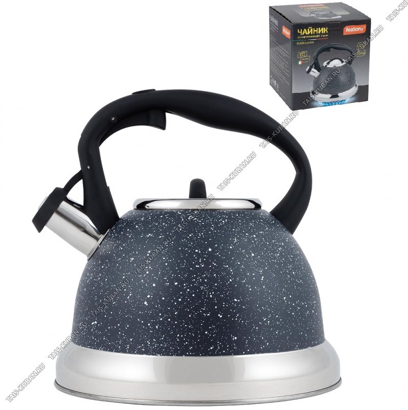 Чайник нерж 3,5л "гранит" графит,свист,индукц.капсул.дно,ручка бакелит."soft-touch" с кнопк.д/открыван,матов,п/у (12)