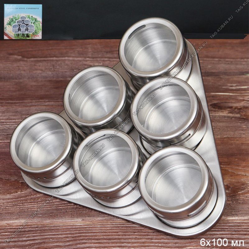 Баночки д/специй 6шт по 100мл, на магнит.подст, (стекло+нерж) п/у (30)