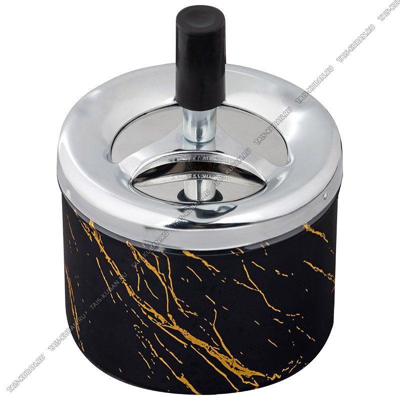 Пепельница круг "бездымная" d12 h9см "Золотой мрамор" на черном,хромир.металл+пластик (36)