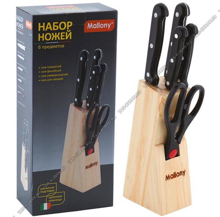 Набор ножей 5предметов на бамбуковой подставке (поварской 20/филейный 13,5/д/овощей 8/универсальный 12,5см+ножницы) нержавеющее лезвие,деревянная ручка,подарочная упаковка (12)